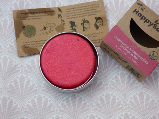 Deze maand gebruikte ik de You’re One in a Melon Shampoo Bar van Happy Soaps op. Over het algemeen had deze shampoo een goed effect op mijn haar. Jammer dat de tinnen blikjes van Happy Soaps na een tijdje niet goed meer open gingen. Ik schreef een review over deze shampoo. Je kan deze review hier lezen. Je kan de You’re One in a Melon Shampoo Bar voor €8,75 hier op de site van Happy Soaps vinden.